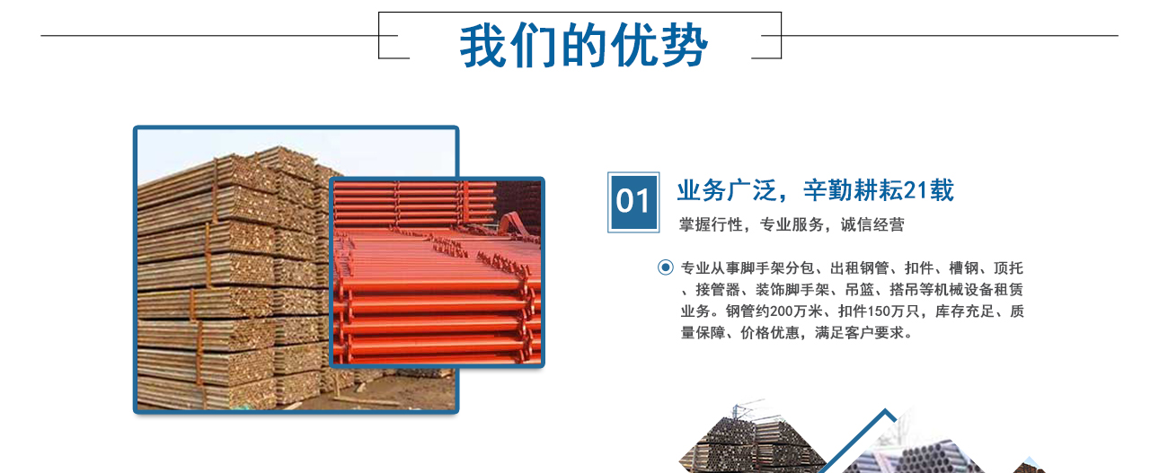 安徽海洋建筑工程機(jī)械租賃有限公司、淮南佳輝建筑工程有限公司是由淮南興勝鋼管租賃公司起家的,從事專業(yè)腳手架資質(zhì)分包、鋼管、扣件、槽鋼、頂托、接管器、裝飾腳手架搭設(shè)、吊籃、搭吊等機(jī)械設(shè)備的租賃業(yè)務(wù)。公司成立于1999年,憑借著專業(yè)水準(zhǔn)和成熟技術(shù),在業(yè)內(nèi)迅速崛起并不斷發(fā)展創(chuàng)新。